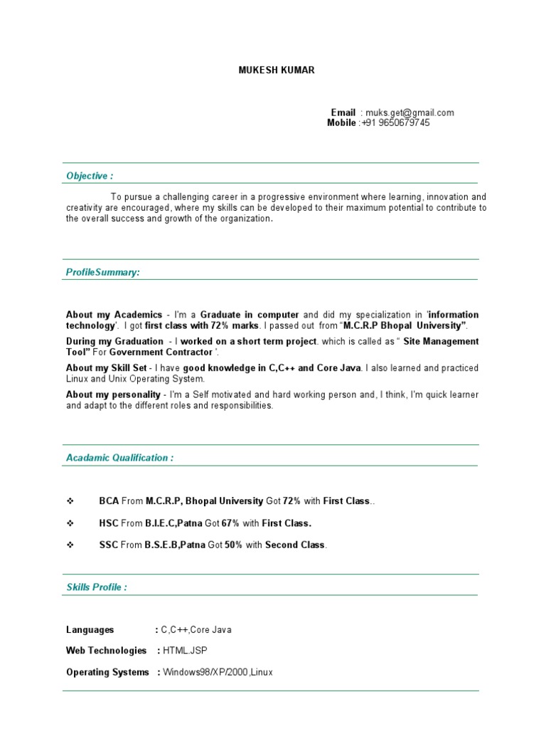 resume declaration - Scribd india from 4.bp.blogspot.com Our template has a design that neutralizes the disadvantage of being inexperienced in the professional world. Resume format for freshers | download sample resume here #resume #curriculumvitae #cvdownload resume format for freshers download 20 modern resume formats in both microsoft word (doc) & pdf. A fresher resume is the resume prepared for a fresh graduates to present their backgrounds. Our fresher resume exampl e is different from other resumes. Resume declaration samples what is a declaration in resume? 10 resume declaration examples for freshers and. Here is cv format important tips that can lead you to your dream job. Avoid dense text by using a second page, but no more than two pages.