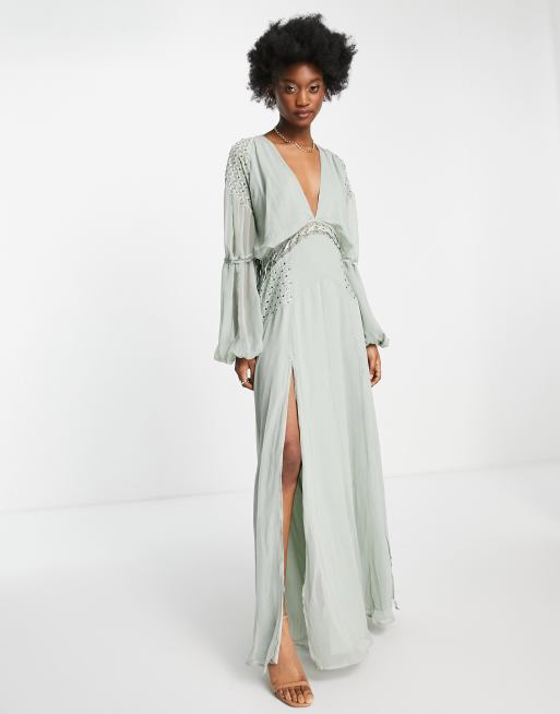 Asos Vestiti Cerimonia Verde : Asos Design Tall Premium Vestito Lungo Da Cerimonia In Tulle Con Nastri Verde Stileo It